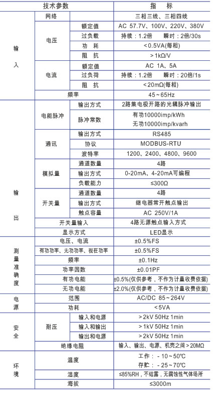 多功能網(wǎng)絡(luò)電力儀表技術(shù)參數(shù)
